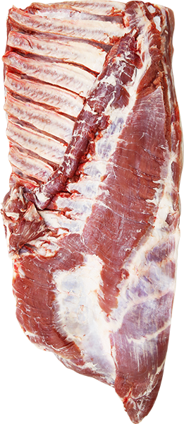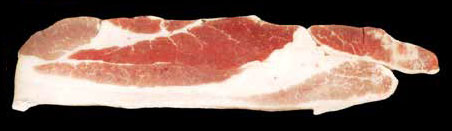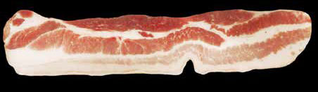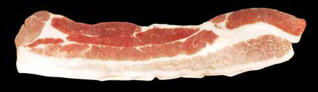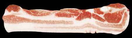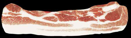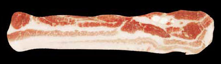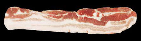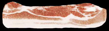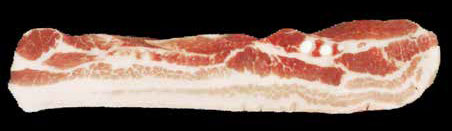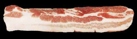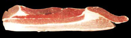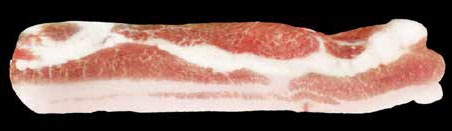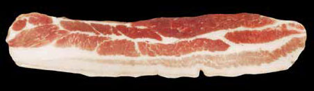 돼지 배 쪽의 근육부분으로 마리당 11.4 kg 정도 생산된다. 지방과 살코기가 삼층으로 겹을 이루고 있다. 육질이 좋고 부드러워 씹는 맛이 좋으며 오돌삼겹을 분리한 후 상품화한다. 삼겹살은 고기 층과 지방층이 적당한 두께로 층을 이루고 있는 것을 양질로 친다. 비타민과 미네랄을 적당량 포함하고 있어 고소하다. |